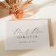 Um livro de convidados elegante com "Sr. e Sra." exibido em um moderno roteiro de caligrafia negra em um fundo de creme. Personalize a frente do simples livro de convidados do casamento com seu sobrenome e data do casamento. A parte de trás do livro de convidados creme mostra a sua foto horizontal de noivado. Adicione seu nome casado e data de casamento à espinha do livro fotoconvidado.