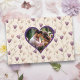 Bela, elegante e simples púrpura e beige aquarela livro de casamentos botânicos florais com um modelo de foto em forma de coração.
