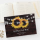 Livro de convidados de casamento de madeiras rústicas e de girassol, com flores de girassol e luzes de cordas em um fundo de madeira rústica. Nosso livro de hóspedes de girassol é perfeito para um país rústico, ou festa de casamento de celeiro inspirada em girassóis.