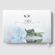 Este belo livro de hóspedes do casamento apresenta uma design romântica com um solteiro azul-poeirento, poeirento, ou rosa azul-poeira, deitado do seu lado refletindo em uma piscina de água. O texto diz: "O Casamento de... com seus nomes e a data do casamento. Maravilhosa maneira de seus convidados deixarem bons desejos e uma lembrança de eterno de seu dia especial.