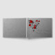 Cinza com rosas vermelhas num livro de convidados de casamento.
