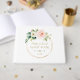 Design elegante e único, com buquê de flores brancas, cor-de-rosa, cor-de-rosa, cor-de-rosa, quadro fino de ouro redondo, divisor floral; no quadro floral de ouro traseiro, iniciais sobre fundo azul-oceano. Use a ferramenta Personalizar para adicionar suas informações, alterar fontes, cores da fonte. Para obter itens correspondentes, visite minha Coleção de Flores de Blush Exclusivas.