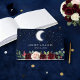 Livro de Convidados Celestial. Céu azul de água com estrelas e a lua. Aquarela Borgonha Azul Cor-de-rosa azul. Greenery Eucalyptus Sai.
