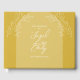Este livro de hóspedes do casamento é mostrado num estilo de arco e apresenta um design floral. Mostrado em cor dourada. Excelente dia de papelaria para o seu casamento. Personalize o texto na parte frontal e altere o texto no painel lateral. Use a modelo para criar seu próprio livro de hóspedes florais do estilo arco de ouro.