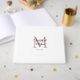 Específico do cliente, moderno, simples, elegante, monograma, branco, livro de convidados de casamento. Basta editar seu produto em alguns minutos. Você pode alterar a fonte/tamanho/cor e a posição usando "mais personalização".