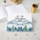 Livro de visitas de casamento temático de floresta montanhosa em aquarela exuberante em tons de azul e verde para suas memórias de casamento