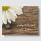 Personalize e namore o encantador Livro de Convidados da Margarida Branca Russa e do País da Madeira Celestial para usar na sua cerimônia de casamento casual, mas elegante. Este livro de convidados personalizado sobre o tema do rancho apresenta uma fotografia floral quase fechada de uma flor margarida branca com um fundo de madeira marrom e curvada.