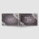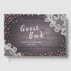 Lace branco elegante e brilho cor-de-rosa brilhante nos livros de casamento de madeira rusticada, excelente para casamento rústico, casamento de celeiros e casamento de campo. Veja todas as peças correspondentes na coleção.