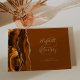 Este elegante livro de hóspedes apresenta um design agate de cor d'água em tons de ferrugem e laranja queimada, aparado com falsa brilho dourado. Personalize facilmente o texto dourado sobre um fundo marrom-noz, com os nomes da noiva e noiva em uma caligrafia caprichosa sobre uma grande e grande mala. Adicione texto adicional da sua escolha à frente e à coluna.