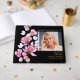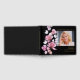 Um livro de visitas para funeral memorial elegante preto e dourado com foto floral rosa para celebração de vida. Projetado por Thisisnotme©