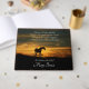 Esta celebração do livro de hóspedes tem um poema espiritual original de Stephanie Laird, este livro de hóspedes tem um cavalo e um pôr do sol. Quando você vir o nascer do sol, pense em mim. Quando a brisa legal te tocar, saiba que estou livre. Quando você sentir a tristeza de nós estarmos separados, saiba que eu não estou perdido; eu sou parte do seu coração. Personalize o cobrir com o nome do falecido. Uma maneira maravilhosa de pensar e lembrar de uma vida.