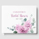 Livro de visitas de chuva de noiva floral moderno e elegante de meados do verão com um buquê de dália em tons de roxo e rosa, com folhas botânicas verdes exuberantes e eucalipto. Por favor, encontre mais designs e variações correspondentes na minha loja "celebrationmoment".