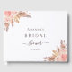 Para uma chuva de presentes de noiva elegante e moderna. Um fundo branco chic. Decorado com dourado rosa, flores cor-de-rosa bege, capim dos pampas. Personalize e adicione um nome e data.