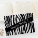 Design com estampa de zebra. Adicione o nome do evento e a data na lombada se desejar.