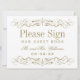 Guie seus convidados a se registrarem com este letreiro de "Por favor, assine nosso livro de visitas" com trabalho em ouro vintage. Bordas ornamentadas em filigrana enquadram a tipografia elegante, com espaço para o nome do casal e a data do casamento para um toque personalizado. A paleta clássica de ouro sobre branco e o design atemporal de filigrana combinam perfeitamente com o conjunto completo de papelaria. Todo o texto é totalmente personalizável.