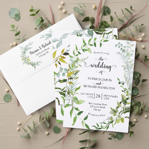 Prepare-se para ser cativado pela nossa exuberante suíte de casamento verde! Encantada com belas ilustrações de folhas de eucalipto e melhorada pela caligrafia romântica, esta suite é o toque final perfeito para o seu casamento mágico de jardim. Se você está sonhando com algo extra especial ou tem solicitações únicas, não hesite em falar por meio de bate-papo — estou aqui para ajudar a transformar seu casamento de sonho em uma realidade surpreendente! NOTA: para obter assistência sobre pedidos, envio, informações sobre produtos, etc., entre em contato diretamente com o Atendimento ao cliente da Zazzle.
