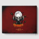 Crânio com dentes afiados e ameaçadores no meio de um cenário escuro e estranho. O crânio, envolto num manto preto, parece um guardião sinistro da noite. Seus dedos longos, parecidos com garras parecem alcançar o espectador, como se os puxassem para dentro das sombras. Os morcegos escuros voam desesperadamente, suas silhuetas dançando à luz da lua, reforçando o sentimento de mal-estar. Uma coruja fantasmagórica com olhos brilhantes que olham para fora da escuridão como dois carvões brilhantes, observando tudo, senta-se num galho brilhado.