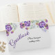 Lindos florais de violetas em tons de lilás e roxo com pequenas flores amarelas e folhagens esverdeadas pintados em aquarela. Perfeito para um tema floral romântico. O design botânico moderno apresenta uma elegante guirlanda floral, para criar uma paleta de cores sofisticada e elegante. Este LIVRO DE VISITAS faz parte da coleção Violetas florais. Ele contém um conjunto coordenado que permite criar facilmente sua papelaria e personalizar sua cerimônia e recepção. Você deve ver um link para ele nesta página, entre em contato comigo, se não vir o link ou precisar de ajuda com um item.