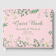 Bem-vindos convidados ao seu casamento com nosso livro de hóspedes simples, mas na moda, com fronteira botânica, em um fundo cor-de-rosa.