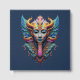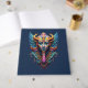 Faça uma declaração ousada com este deslumbrante design de máscara de divindade psicodélica. Compondo chifres dourados arredondados, grandes asas emplumadas e um rosto ricamente decorado em tons ricos de verde-azulado, cobalto, violeta e dourado, esta estampa que chama a atenção é repleta de detalhes intrincados que recompensam um olhar mais atento a cada vez.