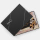 Um design de caçador de sonhos com aparas douradas e marrons que inclui uma teia redonda de vida em círculo de bambu com tons castanhos penas e miçangas vermelhas em um fundo de pena macia para um casamento