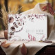 Arranjos delicados, folhagem com pequenos sotaques florais em tons suaves e sonhosos de creme, esticados e rosa com salpicos de burgundy e layouts únicos de design, fazem desta coleção uma emocionante, especialmente para casamentos de outono. O Livro de Convidados do casamento mostrado aqui mostra bordas de folhagem exuberantes e fontes decorativas modernas. Veja o link de coleção nesta página para ver todos os itens correspondentes neste belo design ou ID817 de pesquisa para ver outras peças e opções de cor para este conjunto.