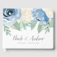 Belo livro de hóspedes azul empoeirado com flores aquáticas e verde. Personalize facilmente este design elegante para o seu dia especial.