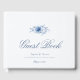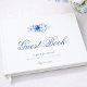 Elegant dusty blue watercolor floral wedding guest book featuring delicate botanical artwork and refined calligraphy typography. This timeless design is perfect for romantic garden weddings, estate celebrations, and classic fine art wedding styles.