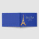 Paris temeu o doce livro convidado de 16 festas feito em azul real sobre padrão azul, com gráficos de uma torre de ouro parecendo Eiffel. Personalize os campos de texto para seu dia especial.
