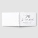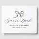 Capture heartfelt memories from your special day with this elegant wedding guest book featuring a hand-drawn black bow and refined script that reads “Guest Book” across the front. The minimalist black and white design brings timeless charm to any wedding style—classic, modern, romantic, or black-tie. Personalize the cover with the couple’s names and wedding date, and add custom text to the spine for a fully personalized keepsake. A beautiful way to collect notes, well wishes, and signatures from your loved ones.