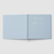 This elegant wedding guest book features a minimalist design with a soft pastel blue cover, creating a serene and sophisticated atmosphere. The centered text is displayed in an exquisite cursive script font, emphasizing the personalization aspect for any couple's special day. Subtle gold and silver star and confetti accents add a touch of celebration without overwhelming the clean layout. Perfect for formal occasions, this guest book combines modern style with understated luxury, making it an ideal keepsake for cherished memories.