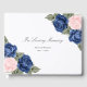 Livro De Visitas Elegante Rosa Azul Flor Funeral