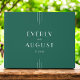 This wedding guest book from the Everly Collection features a deep emerald green design with refined art deco line accents and elegant retro typography. It's modern, minimalist, and formal—perfect for an editorial-inspired wedding.