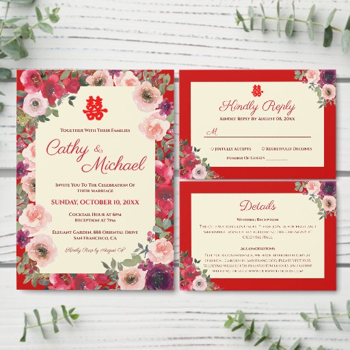 Chinese wedding red purple garden floral frameCriado por Joc H