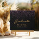 Classe 20xx, ou qualquer ano. Para uma celebração moderna e moderna de graduação. Um fundo preto chic com confete rosa e roxo. O texto: Formando é escrito com um script de estilo com letras grandes. Modelo de nome e ano. Adicione seu próprio texto na coluna.