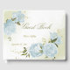 Bonito livro de hóspedes botânico com flores azuis com algumas folhas verdes. Os detalhes da brilha do ouro são simulados. PARA MAIS PRODUTOS CORRESPONDENTES, clique na coleção acima ou entre em contato comigo.