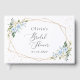 Adicione um toque pessoal à celebração do seu chá de panela com estes itens de na moda e festa memoráveis! Design apresenta flores azuis e brancas de aquarela, verde, confete dourado e moldura dourada sobre fundo branco.
