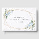 Adicione um toque pessoal à sua celebração de casamento com estes itens de na moda e festa memoráveis! Design apresenta flores azuis e brancas de aquarela, verde, confete dourado e moldura dourada sobre fundo branco.
