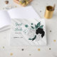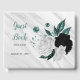 elegantes flores pretas, brancas e azuis lacrimogêneas com algumas folhas azuis em cinza prateada livro convidado