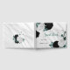 elegantes flores pretas, brancas e azuis lacrimogêneas com algumas folhas azuis em cinza prateada livro convidado