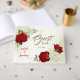 Belo livro de convidados de casamento, com flores vermelhas e brancas e folhas verdes Os detalhes da reluz dourada são simulados. PARA MAIS PRODUTOS CORRESPONDENTES, clique na coleção acima ou entre em contato comigo