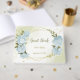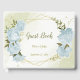 Bonito livro de hóspedes botânico com flores azuis com algumas folhas verdes em um quadro geométrico dourado. São simulados os detalhes do brilho dourado. PARA MAIS PRODUTOS CORRESPONDENTES, clique na coleção acima ou entre em contato comigo.