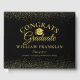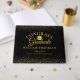 Um livro de visitas de formatura elegante com os detalhes da formatura definidos em tipografia sofisticada em um fundo preto e dourado brilhante. Criado por Thisisnotme©