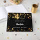 Um fundo na moda preto com estrelas douradas falsas. Adicione sua foto, nome e texto. O número de idade é escrito com uma fonte de estilo de balão. Spine: adicione seu texto.