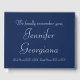 Este elegante guia de lembranças funerárias/memoriais apresenta a mensagem "Nós carinhosamente nos lembramos de você,", e o nome personalizado e as datas de nascimento/morte do indivíduo que passou. Poderia ser usado para registrar desejos simpáticos para os familiares e amigos de alguém que passou recentemente. O fundo é azul escuro e o texto é branco.