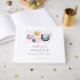 Celebre o marco especial do seu filho com este livro de convidados de aniversário do templo mágico do espaço exterior. Apresentando planetas e estrelas imaginários em marinho, rosa e dourado. Estas estrelas da Galáxia do Aniversário do Espaço Exterior e os Livros Convidados dos Planetas são perfeitos para uma simples festa de aniversário. A design branca moderna apresenta um fundo de aquarela cor-de-rosa adornado com planetas de cor pastel e estrelas brilhantes douradas dispersas.