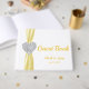 Coração de diamante elegante com fita amarela decora este livro de convidados. Os livros de convidados de casamento são divertidos para o casal e seus celebrantes. Convide os participantes a deixar-vos os desejos na vossa recepção, e é-lhes garantido que terão uma vigilância para olhar para trás durante os próximos anos. Além disso, seus hóspedes vão deixar sua marca no seu evento, sem mencionar colocar em escrevendo o que eles não tiveram a chance de expressar pessoalmente no grande dia. Personalize o livro alterando o texto nos campos fornecidos. Você pode alterar o estilo, o tamanho e a cor da fonte.