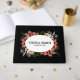 Este elegante livro de convidados do casamento apresenta um design personalizável que permite adicionar os nomes dos casais e a data do casamento para um toque verdadeiramente pessoal. O cobrir apresenta um fundo preto dramático, acentuado por um belo arranjo floral com tons de coral, branco e verde. As flores rodeiam um quadro oval onde os nomes e a data são exibidos em uma fonte clássica, inspirada em vintage, dando-lhe um olhar romântico, mas ousado. Perfeito para um casamento no outono ou com temas góticos, este livro de hóspedes captura um estilo sofisticado e faz uma lembrança memorável que você pode estimar muito depois do dia do casamento. Convidados podem deixar mensagens incríveis dentro, fazer uma maravilhosa adição ao seu dia especial.