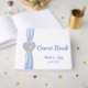 Coração de diamante elegante com fita azul de gelo decora este livro de convidados. Os livros de convidados de casamento são divertidos para o casal e seus celebrantes. Convide os participantes a deixar-vos os desejos na vossa recepção, e é-lhes garantido que terão uma vigilância para olhar para trás durante os próximos anos. Além disso, seus hóspedes vão deixar sua marca no seu evento, sem mencionar colocar em escrevendo o que eles não tiveram a chance de expressar pessoalmente no grande dia. Personalize o livro alterando o texto nos campos fornecidos. Você pode alterar o estilo, o tamanho e a cor da fonte.