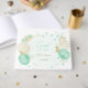 Livro De Visitas hortelã, flores verdes e douradas, casamento flora